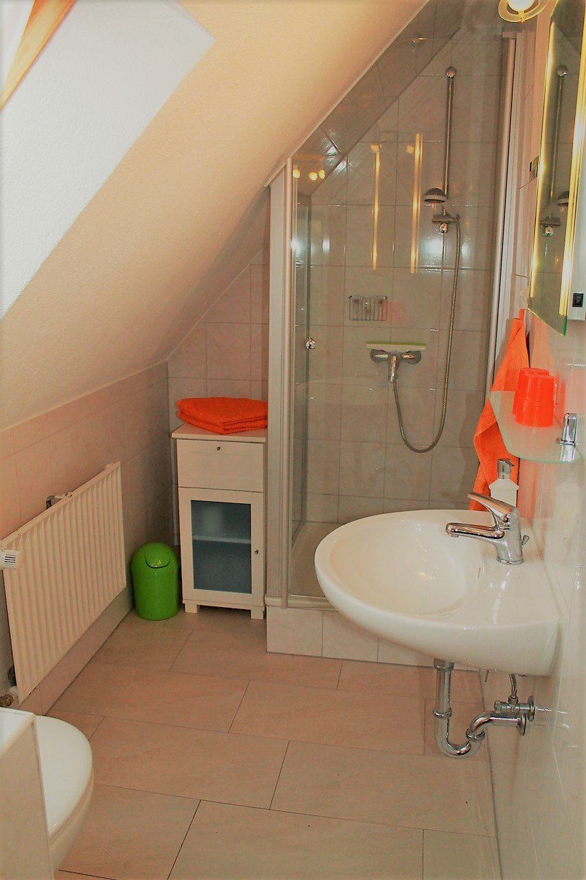 Bad mit Fön, WC und Dusche, elektrische Außenjalousien